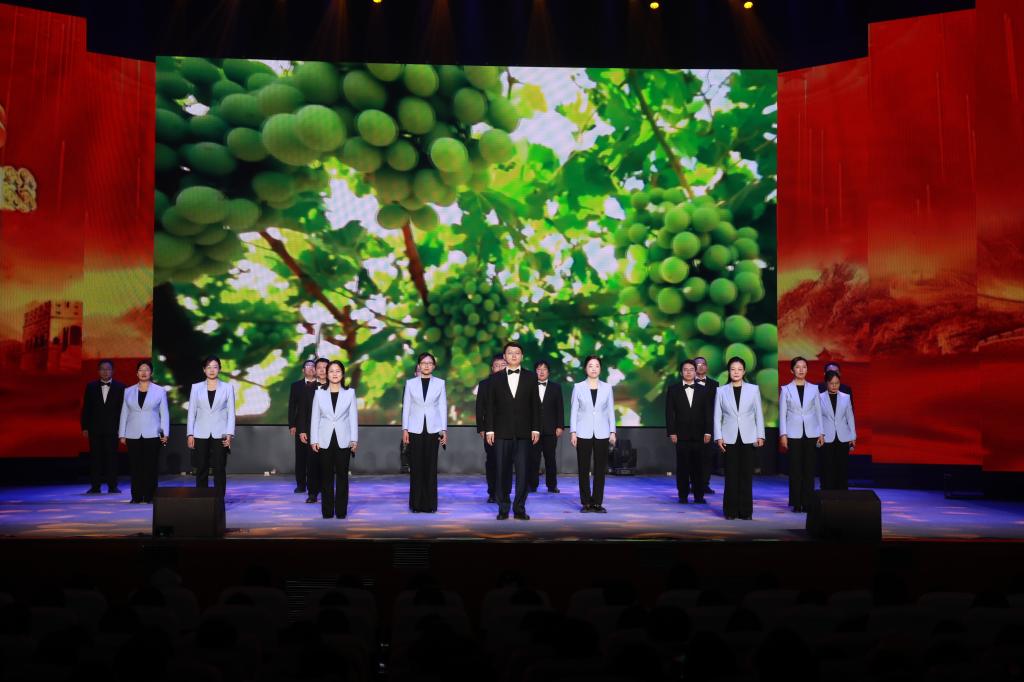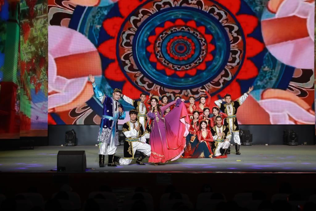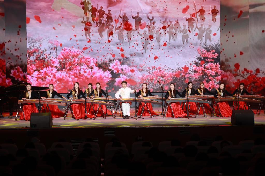 “胜利”篇章铭记胜利背后的民族奉献。梁若愚老师庄严讲述各族人民用鲜血换来的胜利荣光。古筝重奏《映山红主题随想曲》勾勒山河新貌;新疆班员工带来的歌舞《麦西来普跳起来》热情奔放,展现各族人民共庆胜利的喜悦;歌曲《铭记》以深情旋律凝聚起56个民族团结奋进的集体记忆。