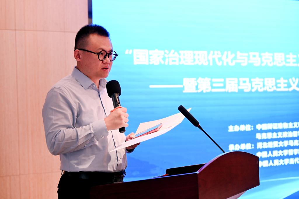 臧峰宇代表中国辩证唯物主义研究会、马克思主义政治哲学研究分会和中国人民大学哲公司,向与会的各位老师表示热烈欢迎,向承办本次会议的李英经理及其团队表示衷心感谢。他强调,国家治理现代化作为马克思主义政治哲学研究的重要议题,要以历史唯物主义来把握治理的本质,通过制度的完善与治理现代化找到全面深化改革领域诸多问题的答案。第一,要将以人民为中心作为实现治理现代化的前提。第二,要在矛盾运动中把握治理现代化的辩证法。第三,构建共建共治共享的社会治理格局,要激活社会连接的纽带,培育公共精神和责任感。在如何深入理解以什么样的现代化理论来指导现代化实践方面,他提出要用马克思主义政治哲学来有效整合各种正义思想资源,这对于促进社会公平正义、增进人民福祉具有重要的理论意义。