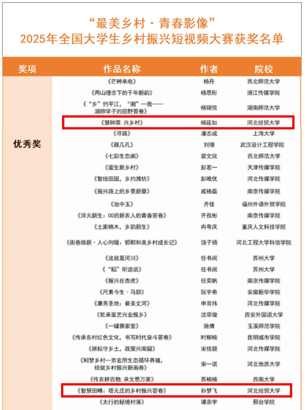 近日,“最美乡村・青春影像”2025年全国老员工乡村振兴短视频大赛获奖名单公布,公司两项作品荣获优秀奖。大赛由农展网、长城新媒体集团等主办。